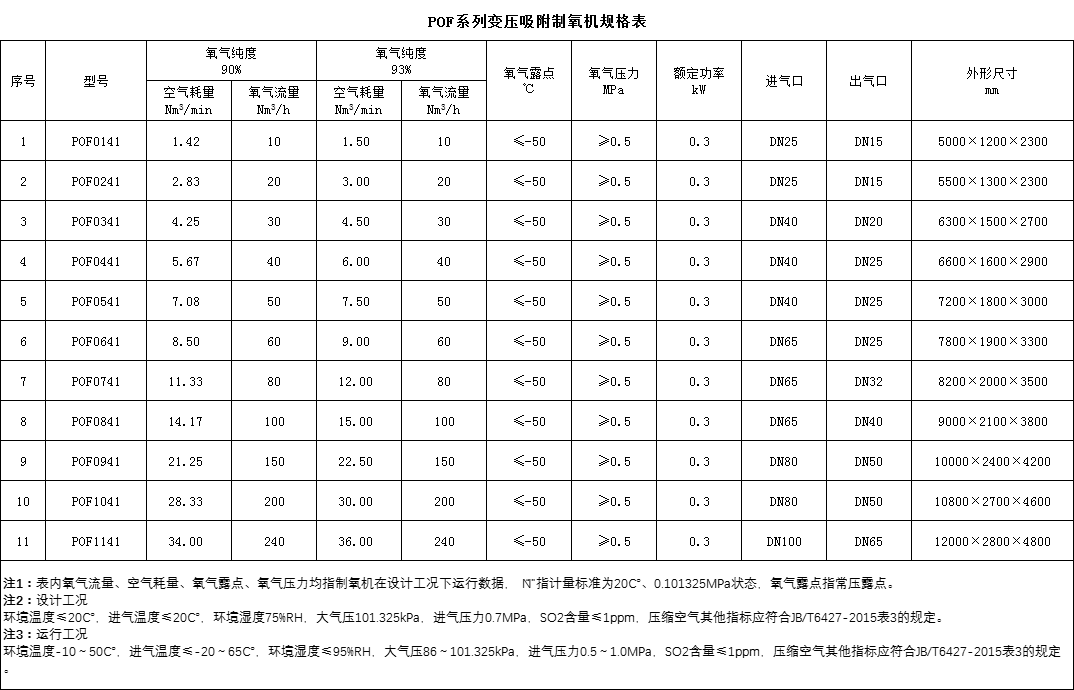氧氣流量: 10~240 Nm3/h(其他流量可以咨詢定制化制氧系統)