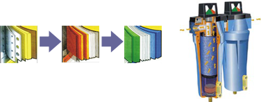 空氣壓縮機提供的壓縮空氣首先通入壓縮空氣凈化中。壓縮空氣先由氣水分離器、管道過濾器除去部分的油、水、塵,再經組合式干燥機進一步除油、水、塵,精過濾器除油、除塵,并由在緊隨其后的超精過濾器進行深度凈化。